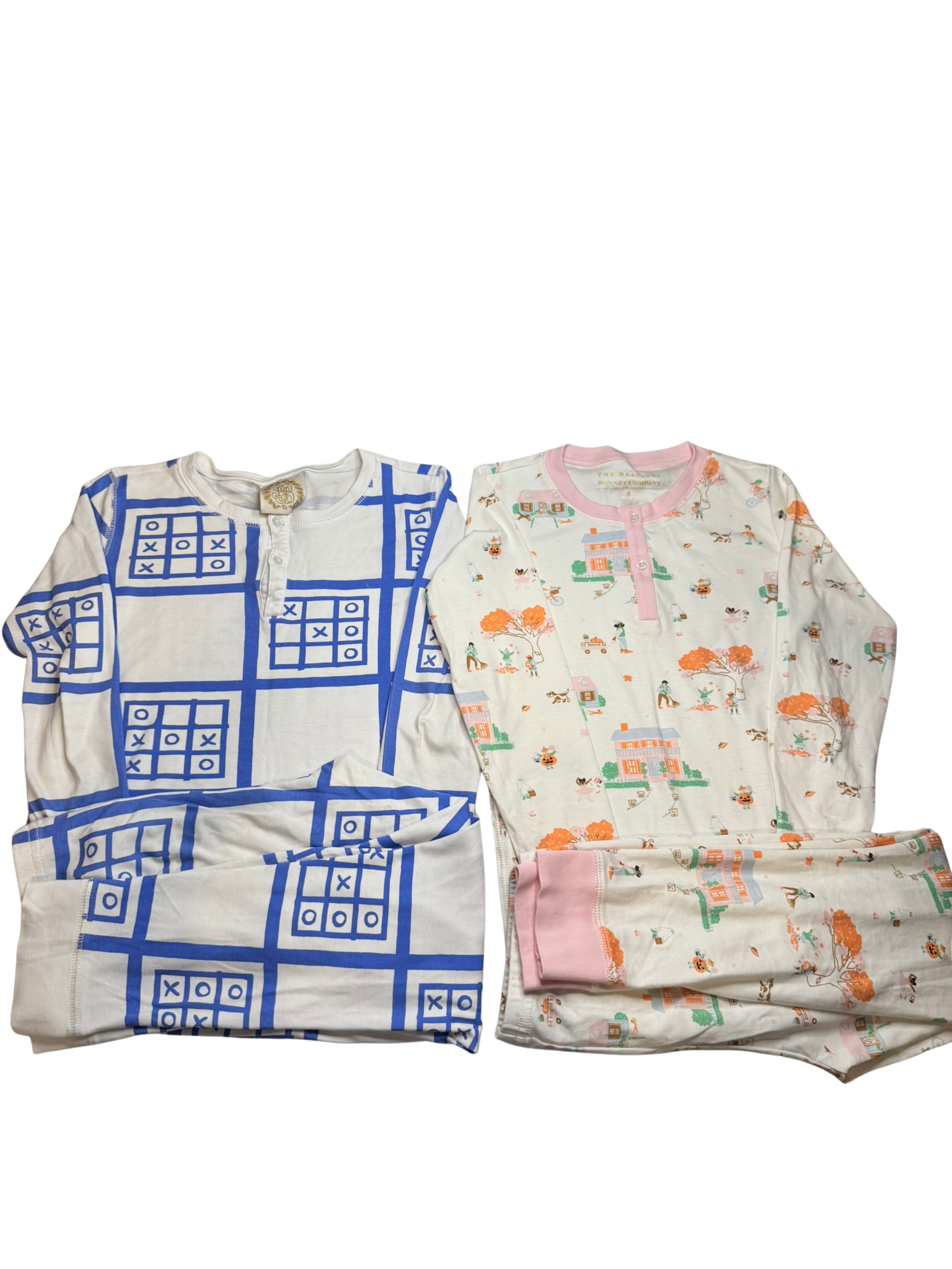 Condition: Good used condition, tic tack toe pjs have a few small stains