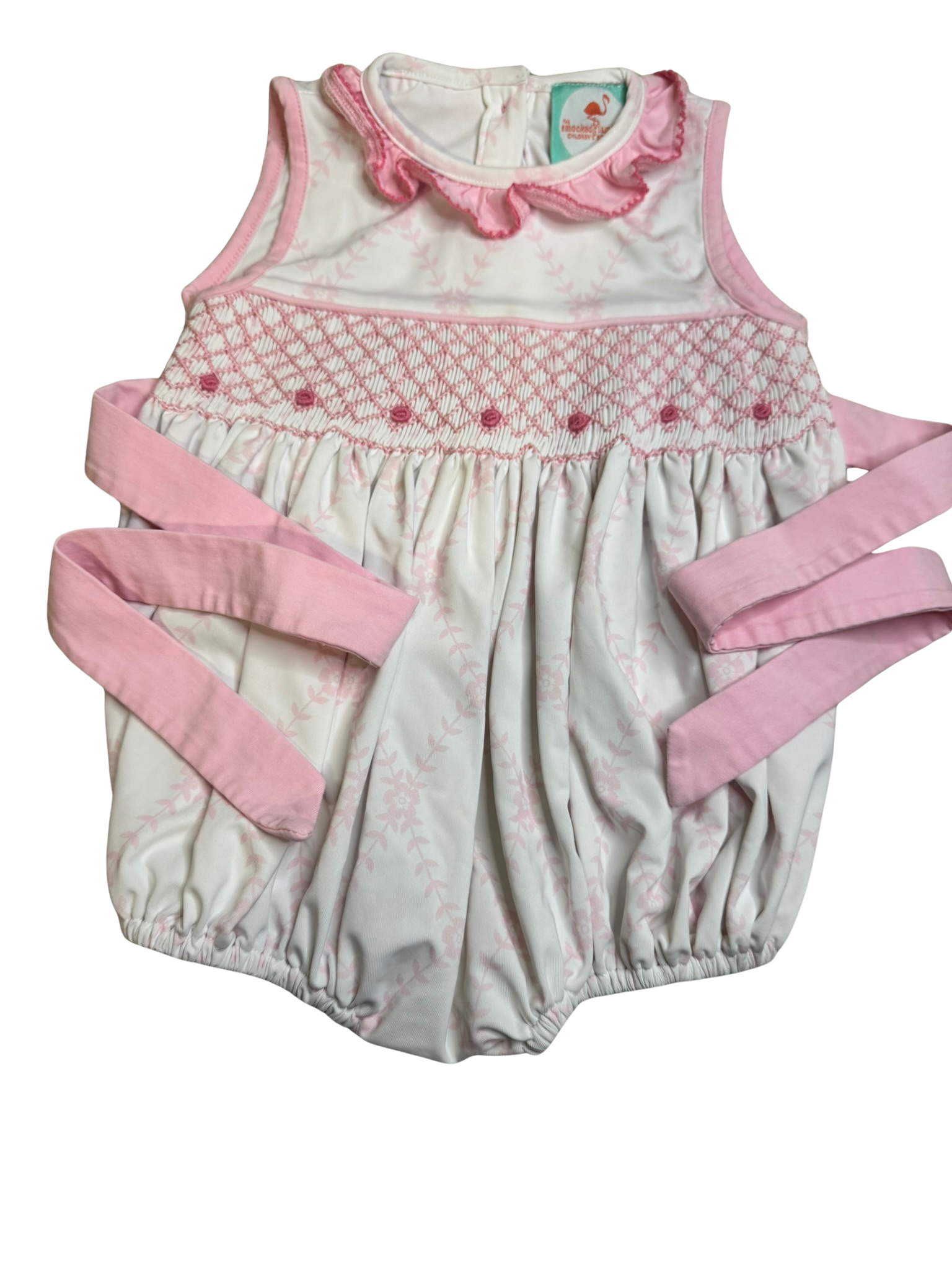 Girls The Smocked Flamingo Smocked Bubble 9m